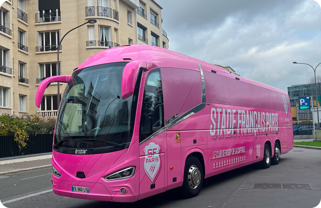 Ancien partenariat officiel pour le transport de l'équipe professionnelle. Autocar aux couleurs du club spécialement aménagé pour transporter les Soldats Roses durant toute la saison, avec équipements adaptés aux besoins des sportifs de haut niveau.